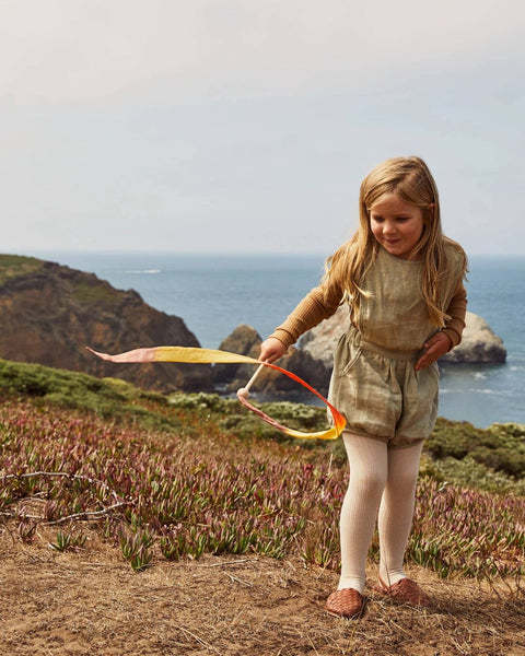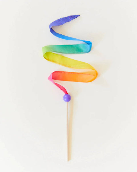 Sold as Case Packs of 5 Single Mini Streamer Price - $6 Streamers encourage your child to play actively, increase their quality of movement, and make them want to dance! Some pretend play ideas include waving in the wind, writing letters in the air, pretend fishing, dancing, and more. * Open-ended play with Streamers allows children to express their imagination and supports their independence. * Nourishing the senses with Streamers adds movement into the play of the child, developing their coordination, proprioception, and gross motor skills. * Growing with the child sets our Streamers apart from any other toy, allowing for a limitless range of play possibilities, and years of lasting play value. Mini Streamer are a 8-inch, birch wood wand with a colorful, 3-foot long, 1-inch wide ribbon streamer. Also available in our regular Streamer size! Not for children under age 3.