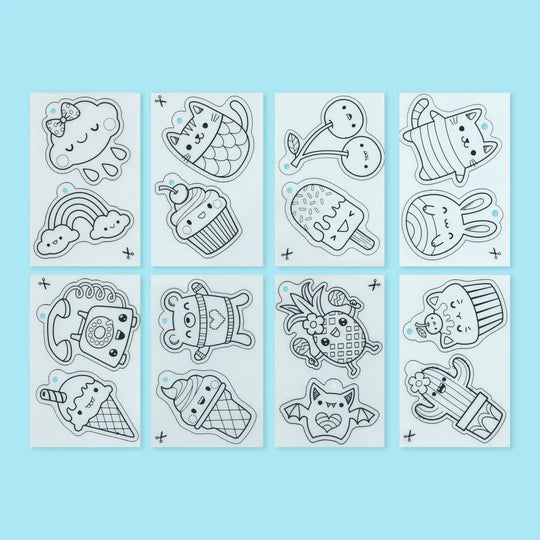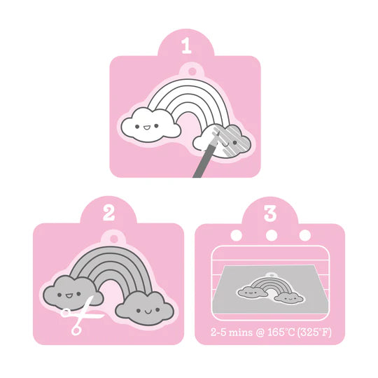 Each set includes everything you need to make your own fabulous shrink-art jewellery. Simply colour the beautifully illustrated pre-cut designs, pop them in the oven and watch them magically shrink to 40% of their original size, in front of your eyes! As your charms shrinks the colours become more intense.